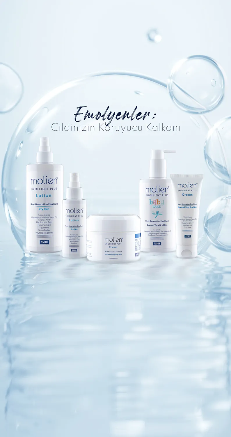 molien® Emollient Plus, birinci, ikinci ve üçüncü nesil emolyenlerin tüm faydalarını bir araya getiren ve özel bio-aktif içeriklerle zenginleştirilmiş gelecek nesil bir emolyenttir.