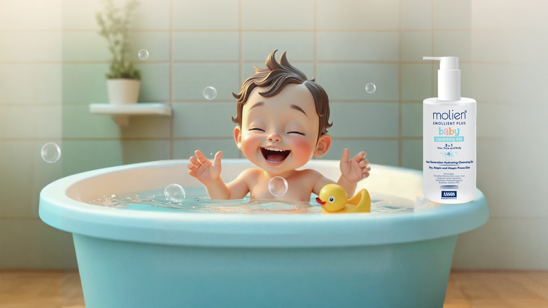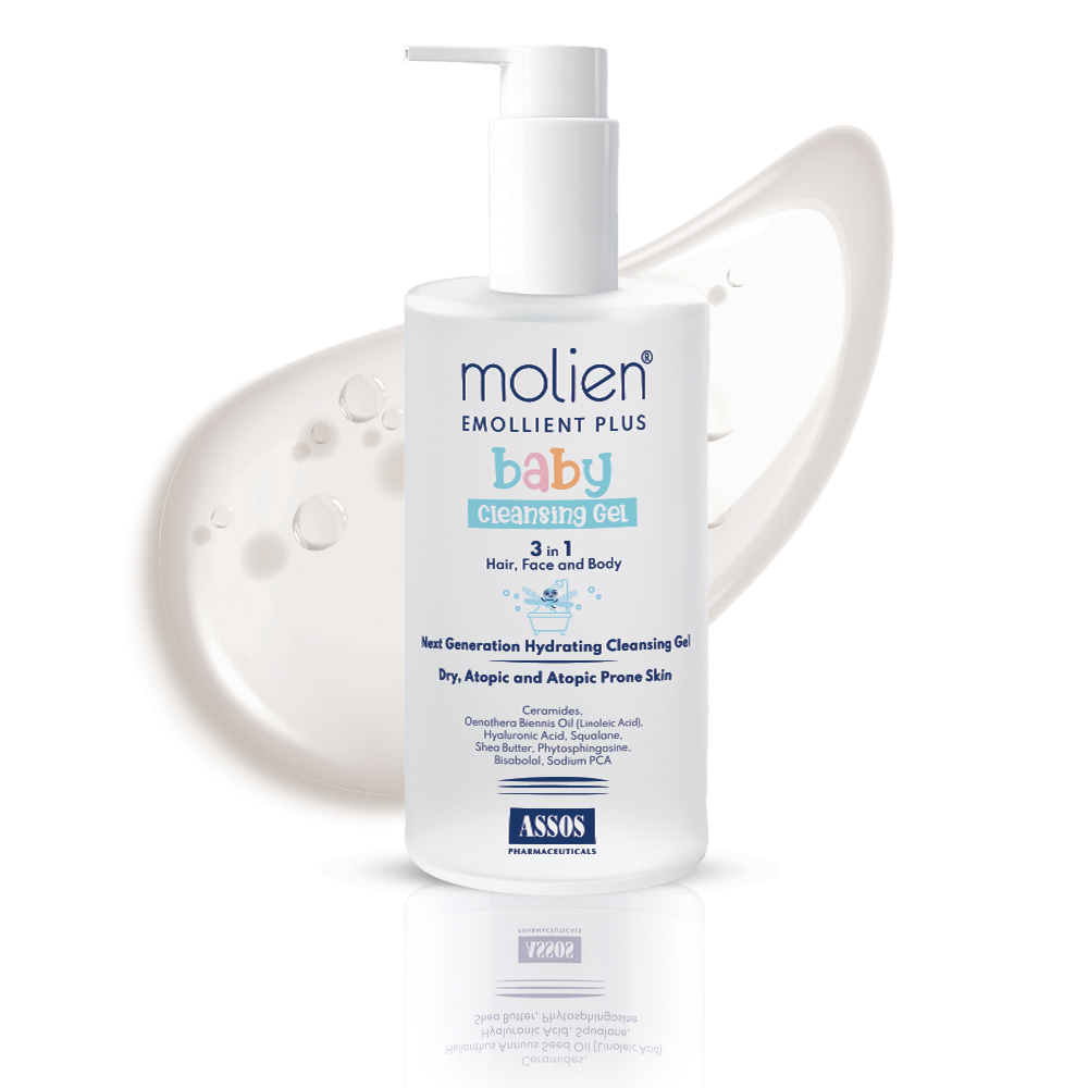 molien® Emollient Plus Baby Temizleyici Jel, kuru, atopik ve atopiye eğilimli cilde sahip bebek ve çocukların saç, yüz ve vücut temizliği için özel olarak geliştirilmiş bir formüldür.